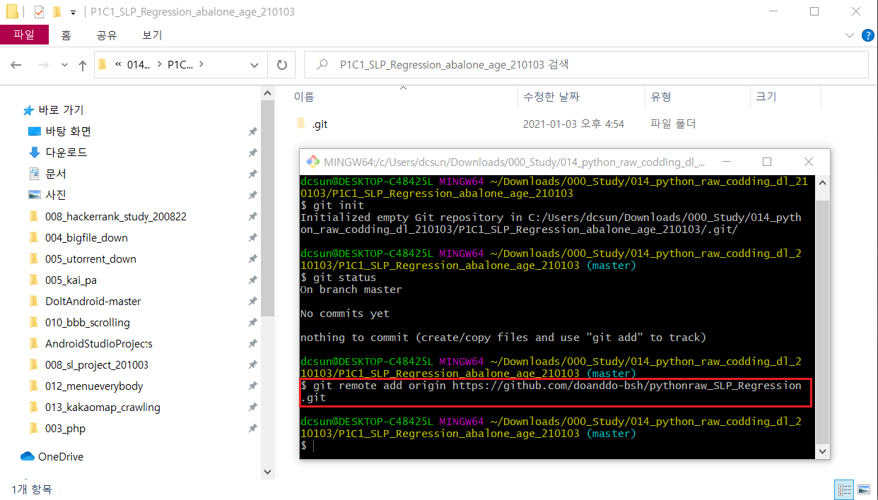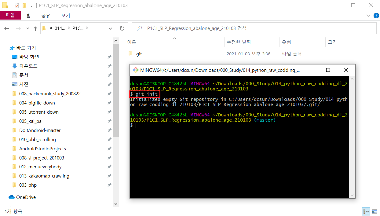 1.3. Git명령어 창에 입력 : git init