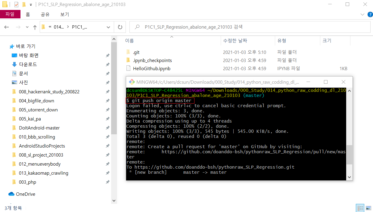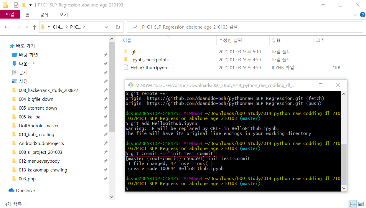 009.Git-bash 실습해보기 (push, pull, merge)